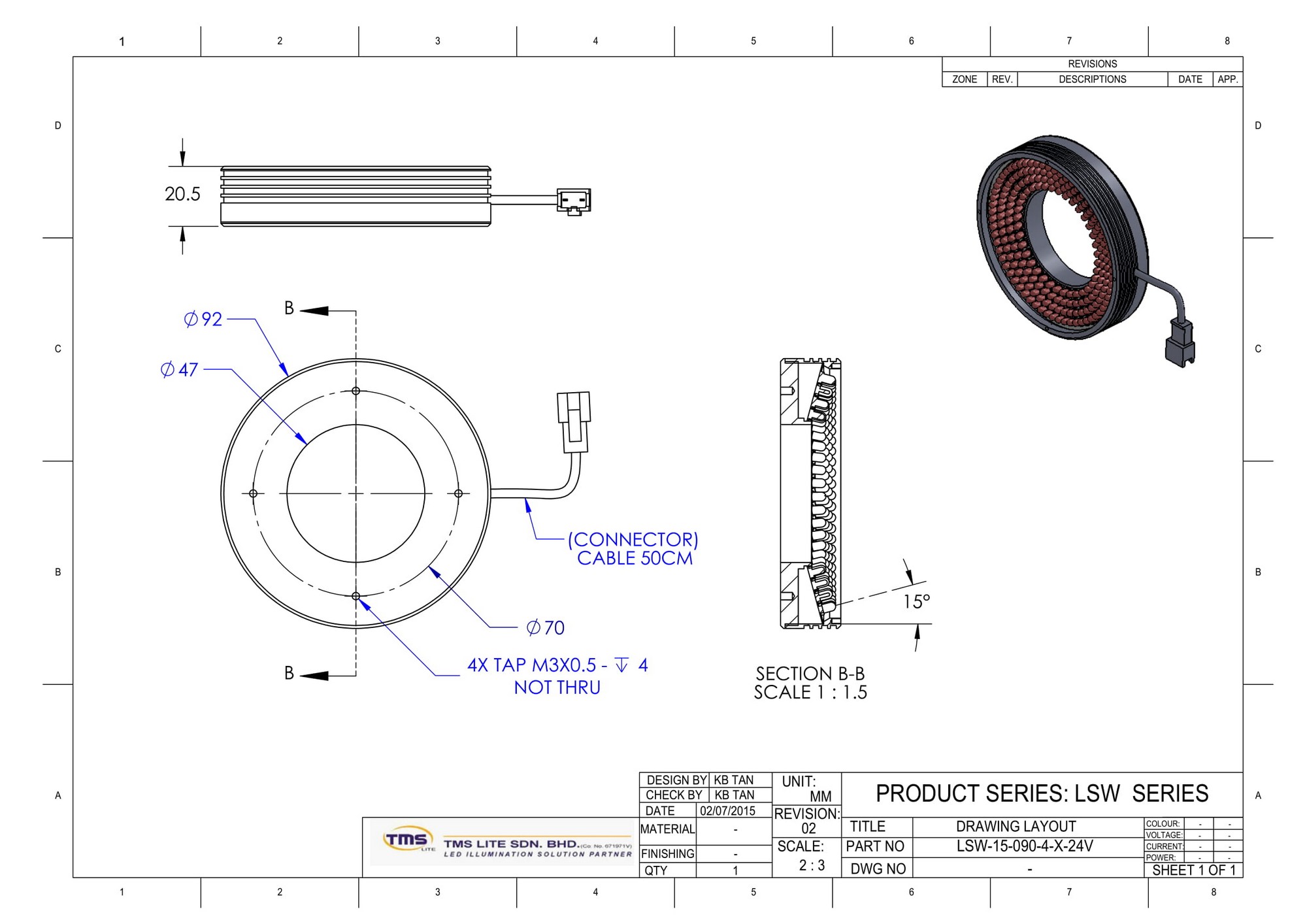1x  LSW-15-090-4-W-24V       Direct Illumination